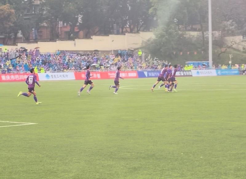 本场比赛,客场作战的秀山毛尖队采用了密集防守战术,加上天降大雨影响球员地面配合,喜欢打短传配合、走技术流的沙坪坝陈昌银队一直得势不得分,迟迟无法形成有效射门机会。直到下半场80多分钟,沙坪坝陈昌银队才利用一次禁区前沿的任意球机会,由前重庆力帆球员陈炣江主罚任意球破门,取得了1比0的领先。