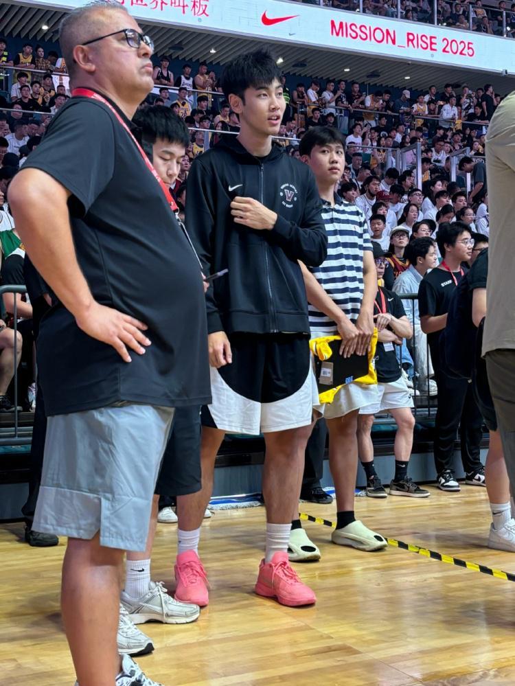 赵睿、崔永熙和李梦与詹姆斯坐在一起,而跟随美高球队参加热身赛的张博源也出现在现场。