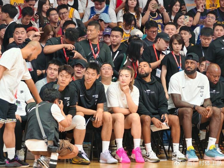 赵睿、崔永熙和李梦与詹姆斯坐在一起,而跟随美高球队参加热身赛的张博源也出现在现场。